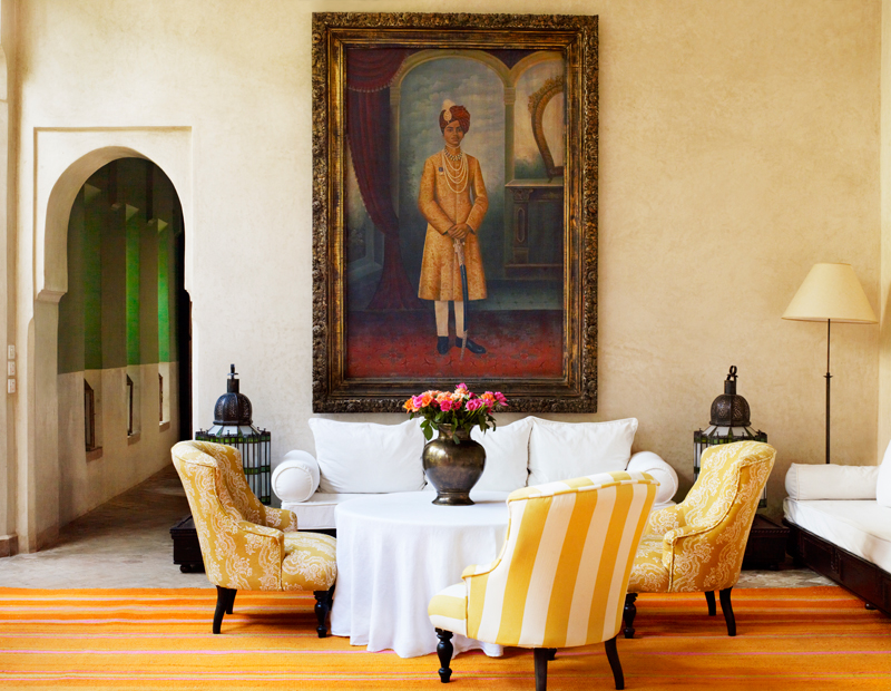 L’Hôtel Marrakech’s dining room is open to non-residents as well as guests of the hotel for lunch and dinner. Tables are set with fine Egyptian cotton. Inviting armchairs and banquettes offer comfort and ease as fresh, vibrant salads and slowly cooked tagines are brought to the table, celebrating the finest seasonal ingredients. On warmer evenings, the dining room opens out on to the garden and on cooler nights a fire is lit.